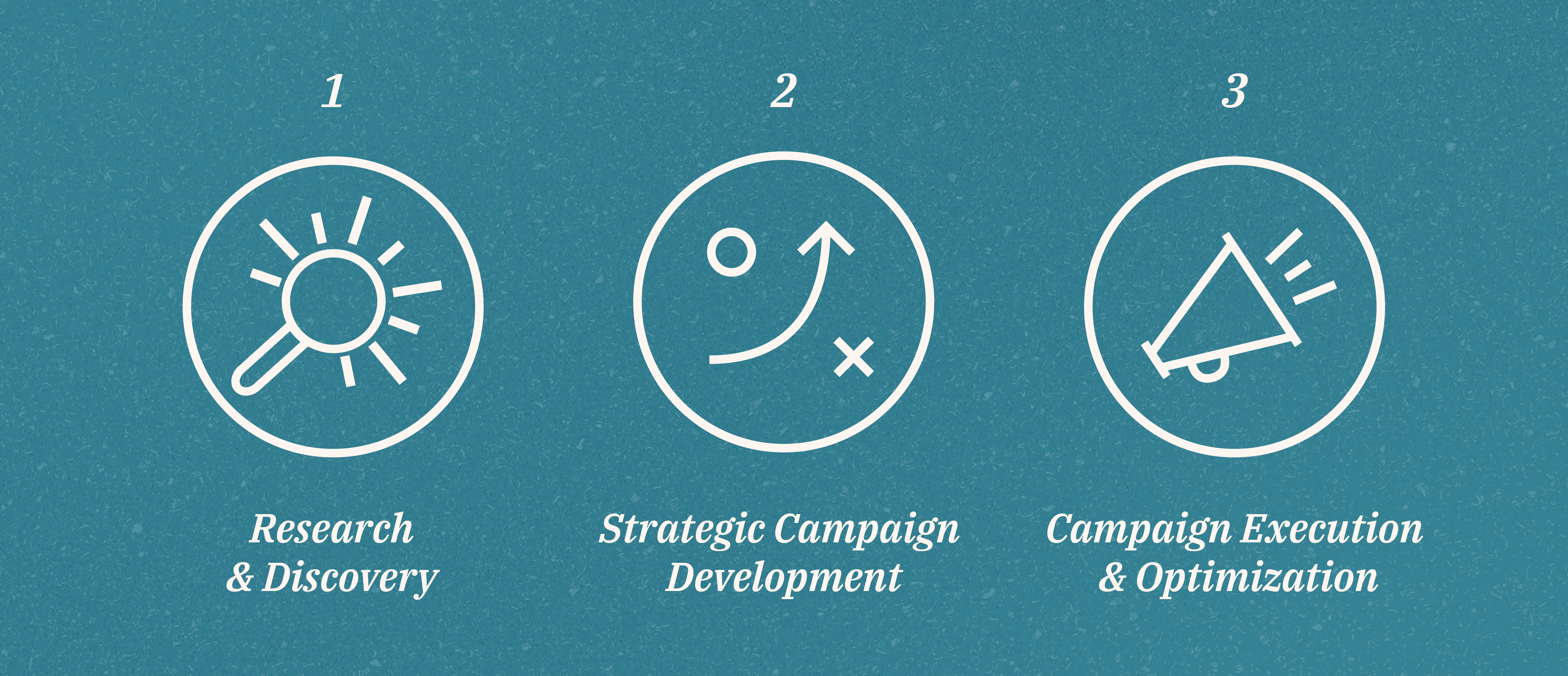Through our research, we’ll uncover unique insights to inform new ways of capturing attention and moving your audience to action. We build on that insight to develop a targeted multi-channel campaign plan with compelling messaging and calls to action. - Campaign Execution & Optimization